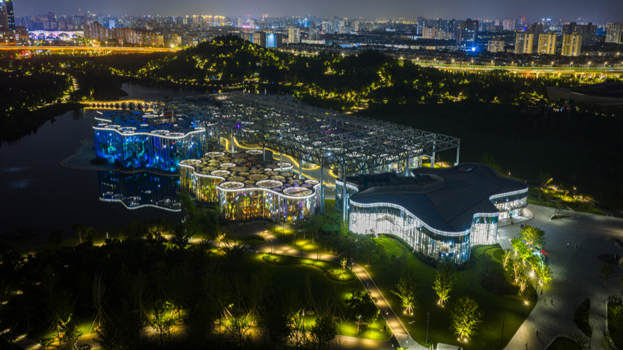 上海温室花园夜景。 图片来源:上海世博文化公园